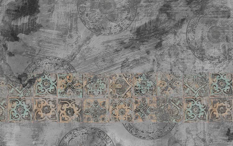 پوستر دیواری پتینه طوسی، با ترکیب رنگی خاکستری و رگه های اسلیمی طلایی مناسب پوستر پذیرایی و یا فضاهای مدرن و شیک.همچنین مناسب کاغذ دیواری پتینه پشت تلویزیون.