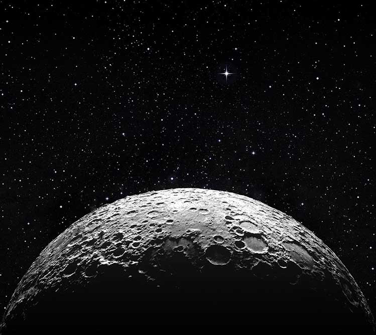پوستر دیواری کهکشان و فضا ، ماه از نمای نزدیک،تصویری خیره کننده از ماه ،این تصویر بعد از نصب و نور پردازی حس و حال جدیدی را به ارمغان میاورد